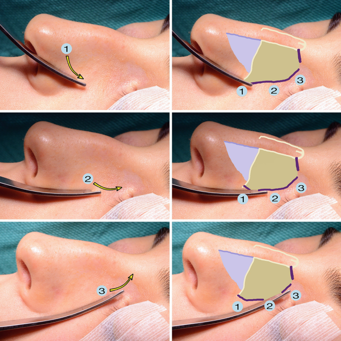 برش: جراح برش هایی را در داخل بینی یا در ناحیه بین سوراخ های بینی ایجاد میکند.