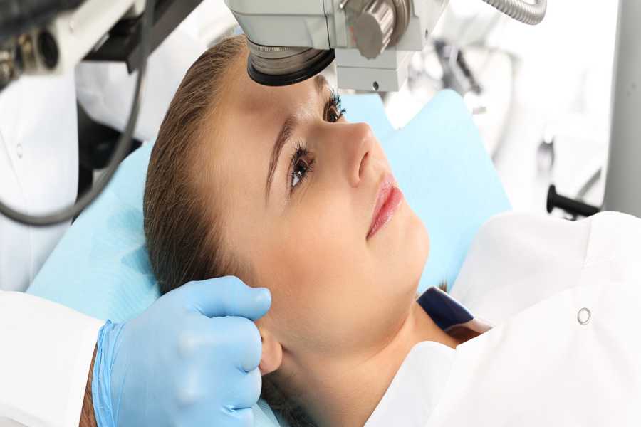 معاینه کامل چشم که شامل اندازه‌گیری دقیق قرنیه و ارزیابی سلامت چشم است.