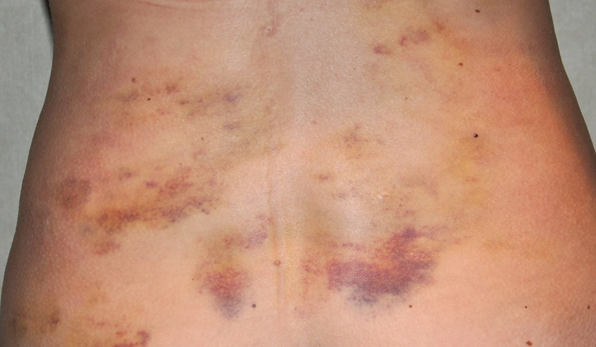 این کبودیها معمولاً به صورت لکههایی بنفش یا آبی ظاهر میشوند و طی چند روز تا یک هفته بهطور کامل برطرف میگردند.